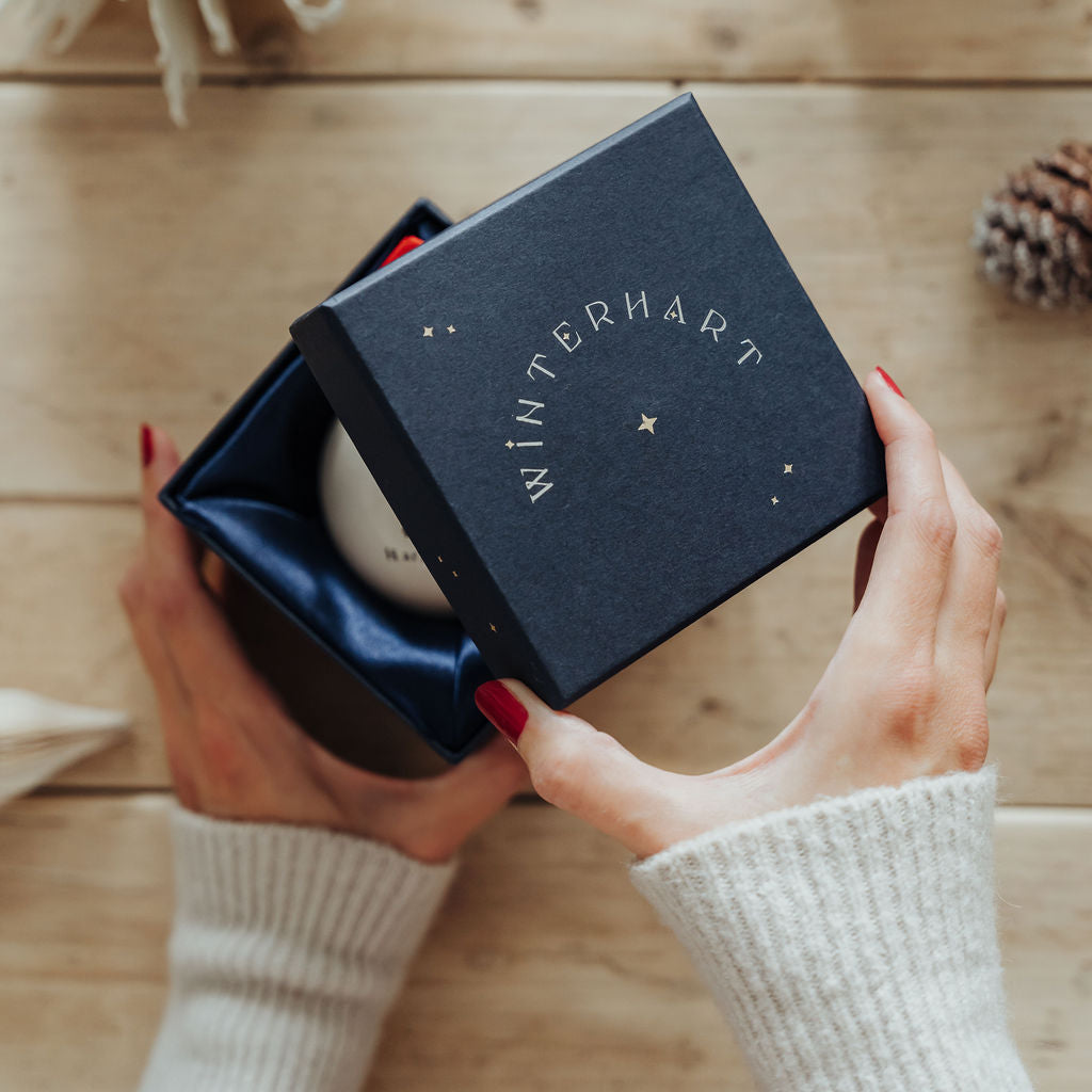 All Winterhart baubles are hand-painted in the UK by artist Katie Simpson and come with a bespoke gift box and tag.