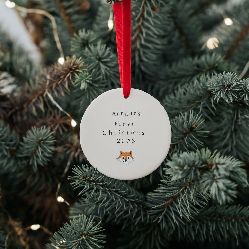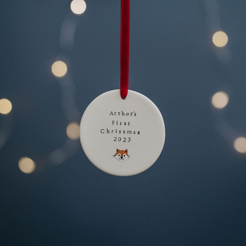 Hand-made from super fine, ultra-white Alpha earthenware clay from Stoke-On-Trent. Unglazed and finished with a luxurious red ribbon, and comes safely packaged in a gift box. Please store in the gift box when packing the bauble away to protect the design.