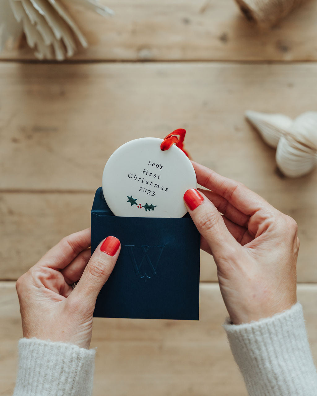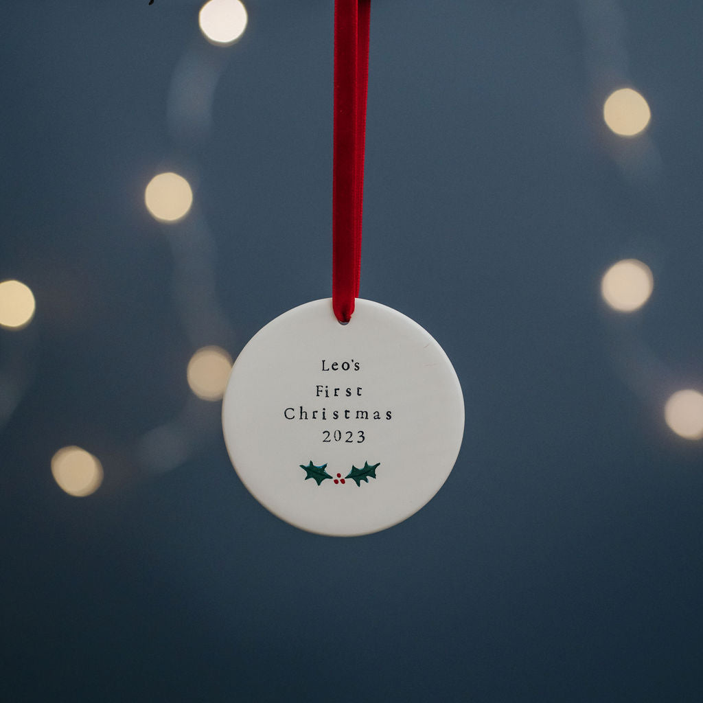 Was 2024 the year a little one joined the family? Mark the special occasion with their very own ceramic decoration, handprinted with a mini holly and berries. Hung with a beautiful red ribbon, this little decoration is a lovely little reminder of the year everything changed!