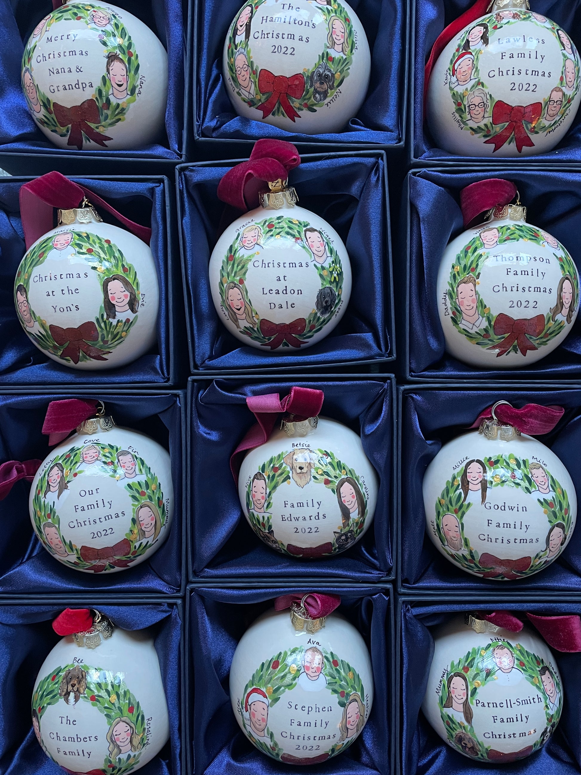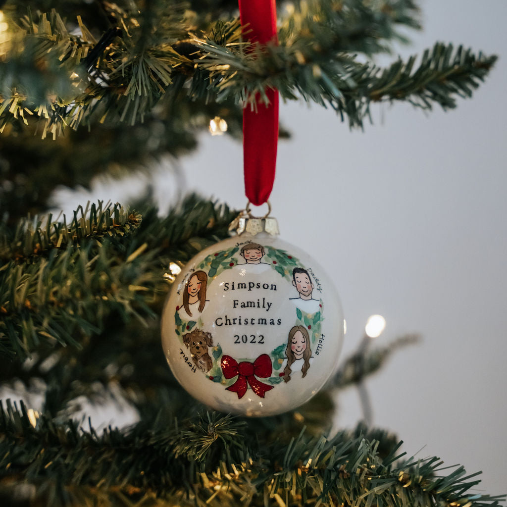 Do you buy a special bauble for the tree every year? This family portrait bauble is the one for 2024! Each member of the family is captured in their own mini portrait, even the pets. And it can be personalised with a message in the middle to mark something really special that has happened this year. A new baby, a new puppy, newly weds, becoming grandparents, this bauble suits all sorts of special events that are worth marking this Christmas time.