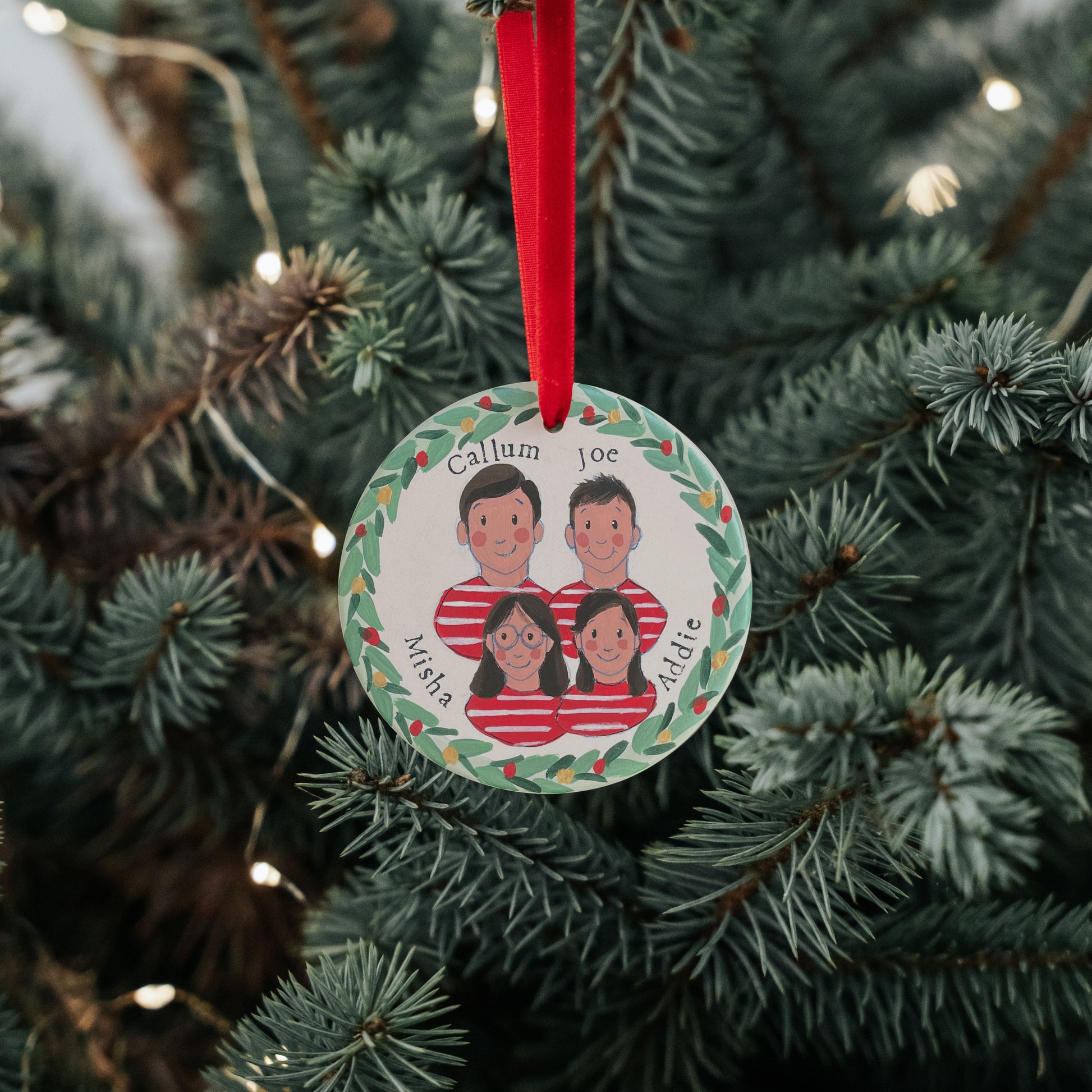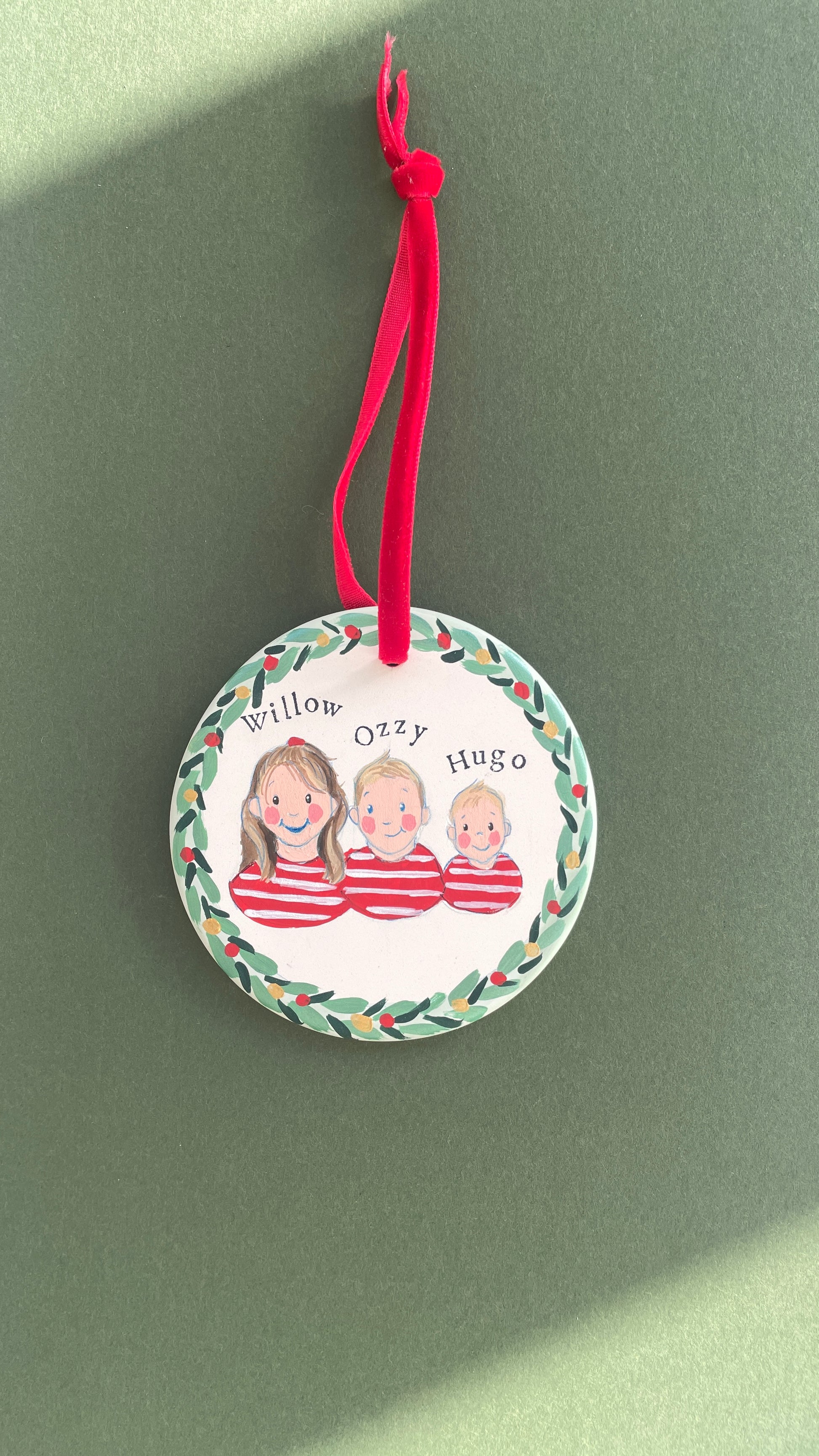 A bauble designed especially for the kids! Capture them all on one bauble in this beautifully festive design that will look stunning on the tree. Send me their photos and I'll hand paint each one of them onto this beautiful bauble.